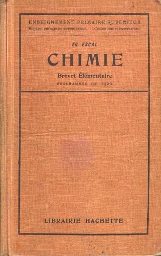- Titre : Chimie - Brevet élémentaire - progammes de 1920