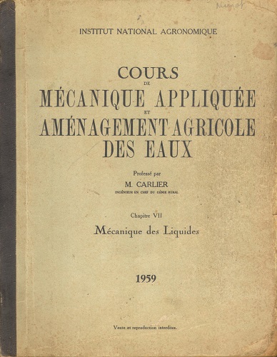 - Titre : Cours de mécanique appliquée et aménagement agricole des eaux - Mécanique des liquides
