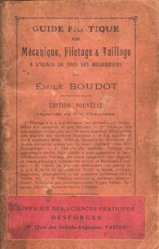 - Titre : Guide pratique de Mécanique, Filetage et Taillage