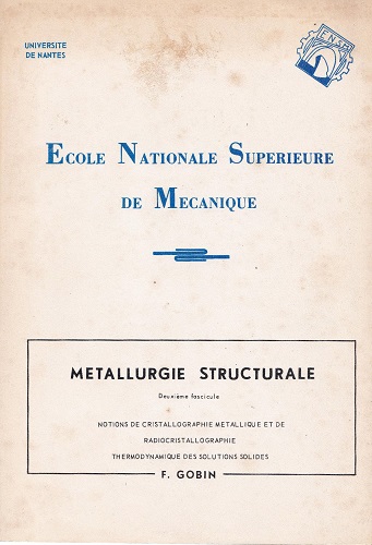 - Titre : METALLURGIE STRUCTURALE - Fascicule 2 - Cristallographie - Thermodynamique des solutions solides